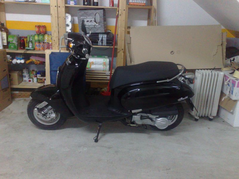 Ya tengo moto desde hace una semana. Finalmente hemos comprado la única moto en que Marta se sentía segura para llevarla con agilidad. Una Daelim BesBY
