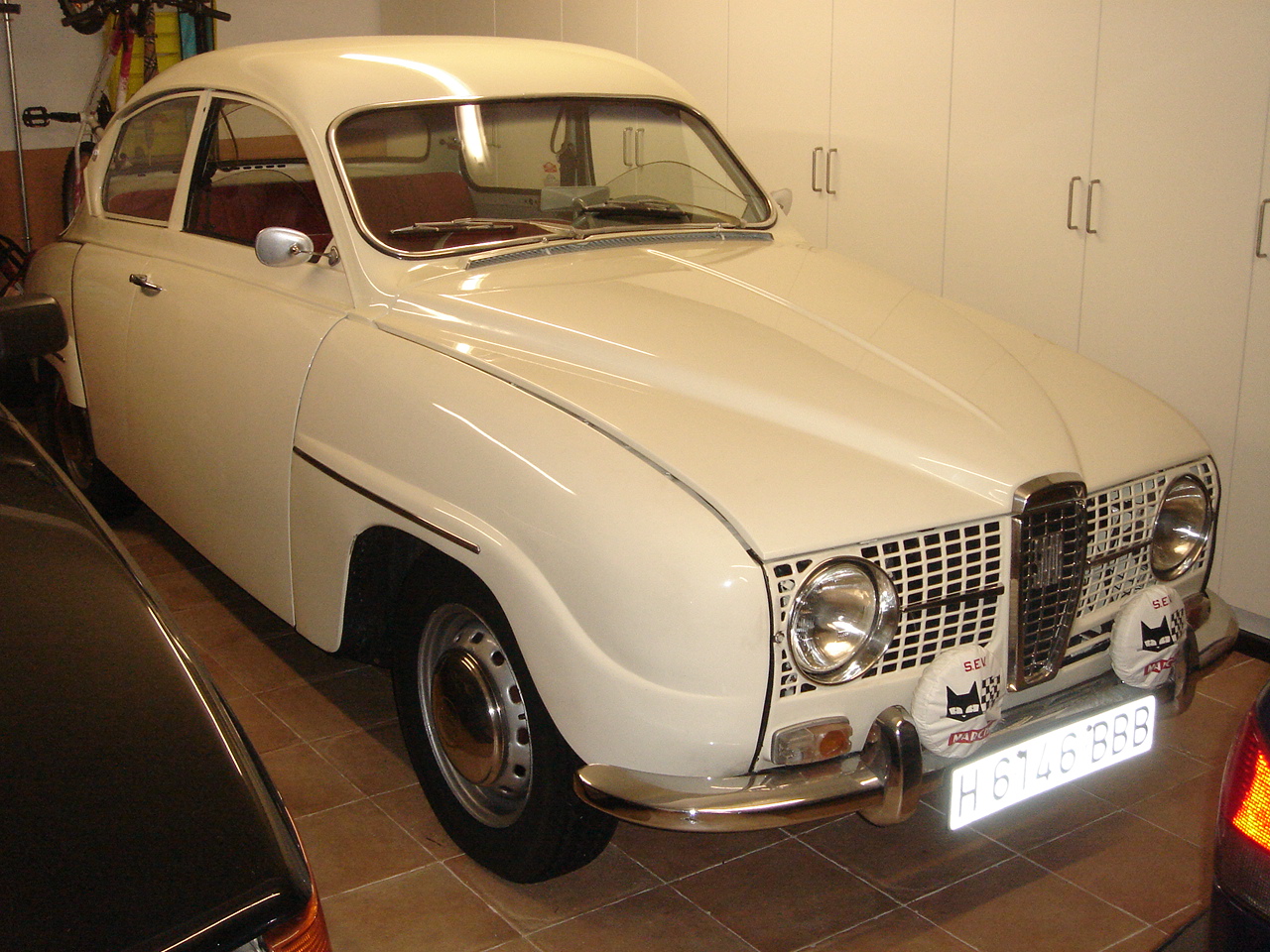 Una curiosidad: La luna delantera es triple laminada, con banda verde superior. Estas características solo las tenían las lunas que se instalaban en los coches con preparación Saab Sport :shock: