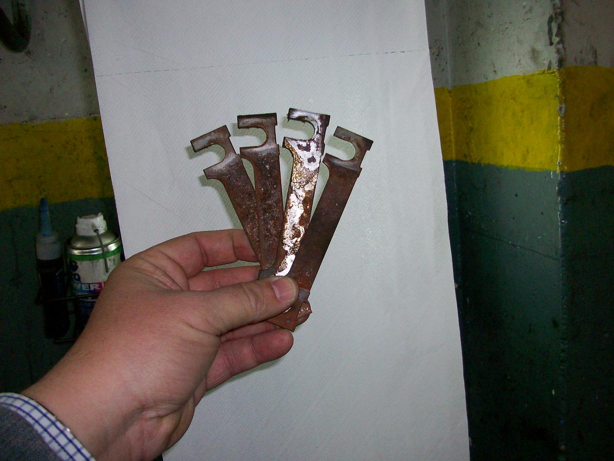 Al lío. Una foto con los PF del trapecio delantero recién salidos de su caja y otras dos para comparar con uno recién sacado (al que le falta una rebaba que se ha cortado con sierra para que saliera mejor) y otros tres de los “viejos”, que como ya he dicho estaban en buen estado.