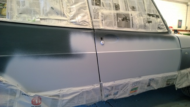 Y por aquí un detalle del paragolpes trasero, todavía sin aplicar el barniz...
